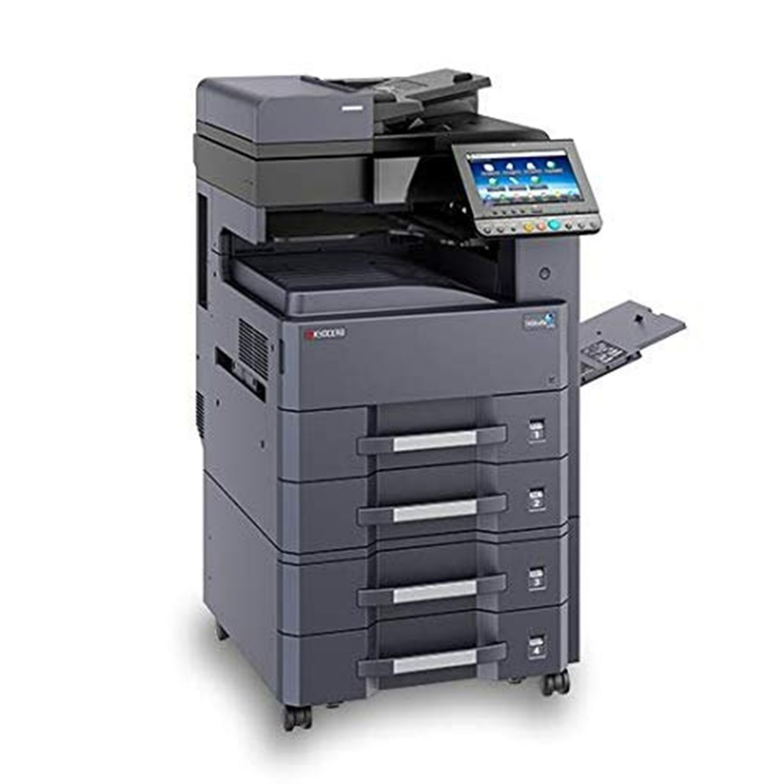Kyocera Taskalfa 4012i Photocopier Machine 40 CPM Copier Network Printer Network Color Scanner WIFI Mobile Printing By Pass Tray 100 Sheets Scan to Folder, Pen drive 500 SheetsPaper Tray*2 25% to 400% Zooming Multiple copies1-999 Drum Life up to 6 Lakhs Copies Duplex, RADF & Trolley Power Consumption 510 WA5R, A4, A4R, LGL & A3Color Touch Screen Mobile Printing & Cloud Printing Sky Shot Ram 2GB32GB SSD