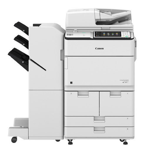 CANON IR ADV 8505 PHOTOCOPIER MACHINE 05 CPM Print Copier Color Scanner Network Printer Network Color Scanner By Pass Tray 100 Sheets 1500 Sheets *2 Tray Zooming 25% To 400% Multiple copies 1-999 Scan To Folder ID & Aadhar Card RSPF Paper Size UP To A5 A4 A3 LGL Sheets Color Touch Screen Wi-Fi Network Printing Mobile Printing Memory 1 GB RAM