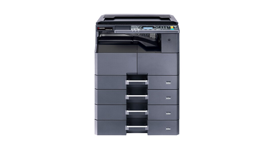Kyocera Taskalfa 2321 • 23 Cpm • Printer • Copier • Color Scanner • Network Printer & Colour Scanner • 300 Sheets Paper tray*1 • Bypass Tray 100 sheets • 25% - 400% Zooming • A3, A4, A5 & Legal sheets • 1-999 • Duplex , RADF • 2:1, 2:2, 1:2 • Drum Life Up to 1.5L Copies • Power 415W • ID Card Extra GST